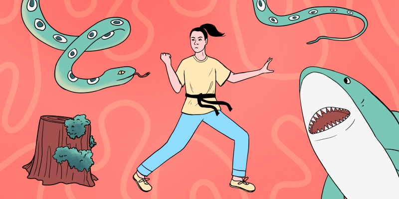 На самом деле наиболее уязвимые части тела этих рыб — глаза и жабры. Но даже если вы будете целиться прямо в них, то крайне маловероятно, что у вас получится нанести действительно серьёзные удары под водой, да ещё и в состоянии стресса. Если вы, конечно, не Чак Норрис. В противном случае вы, скорее всего, промахнётесь и попадёте в пасть — согласитесь, не самый лучший исход событий.